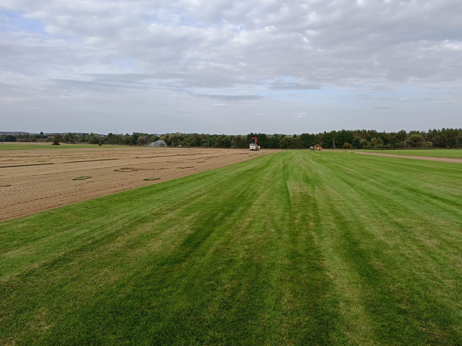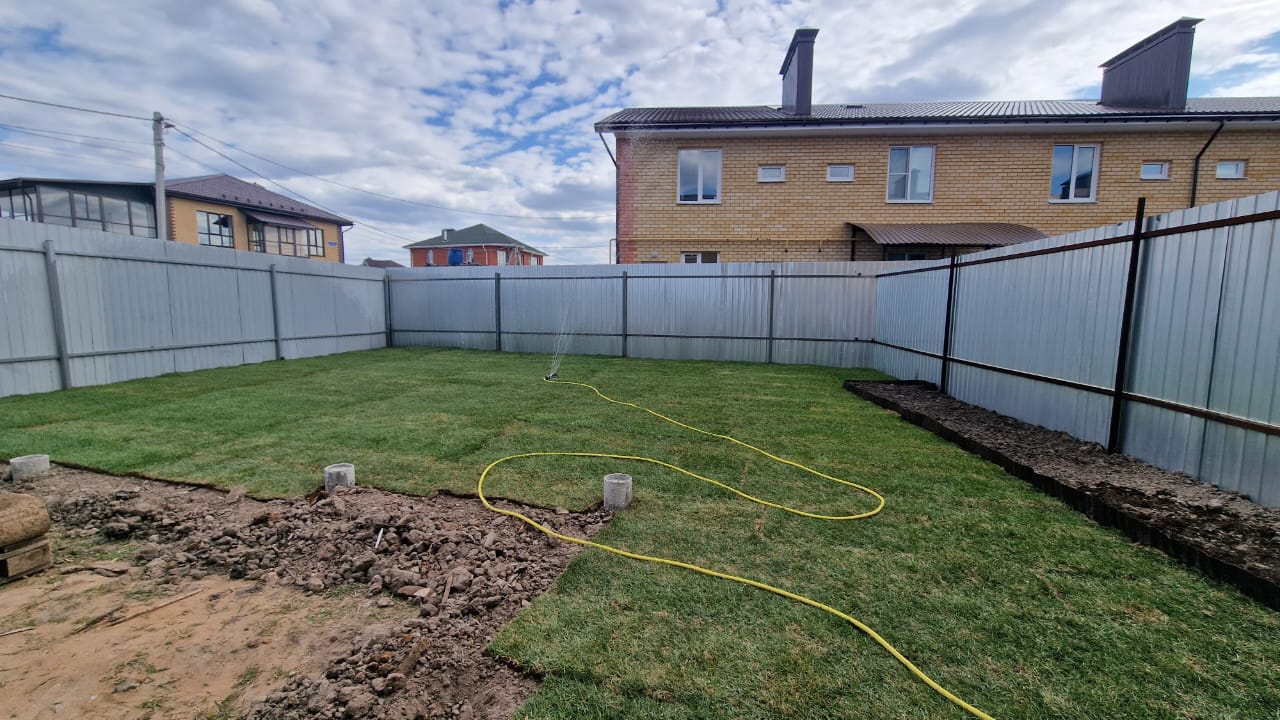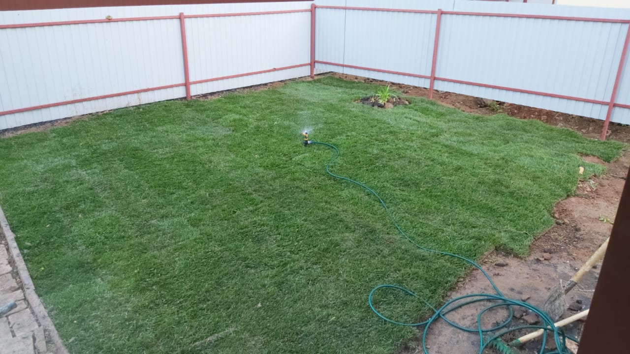✅ Прикатывание катком и обильный полив.