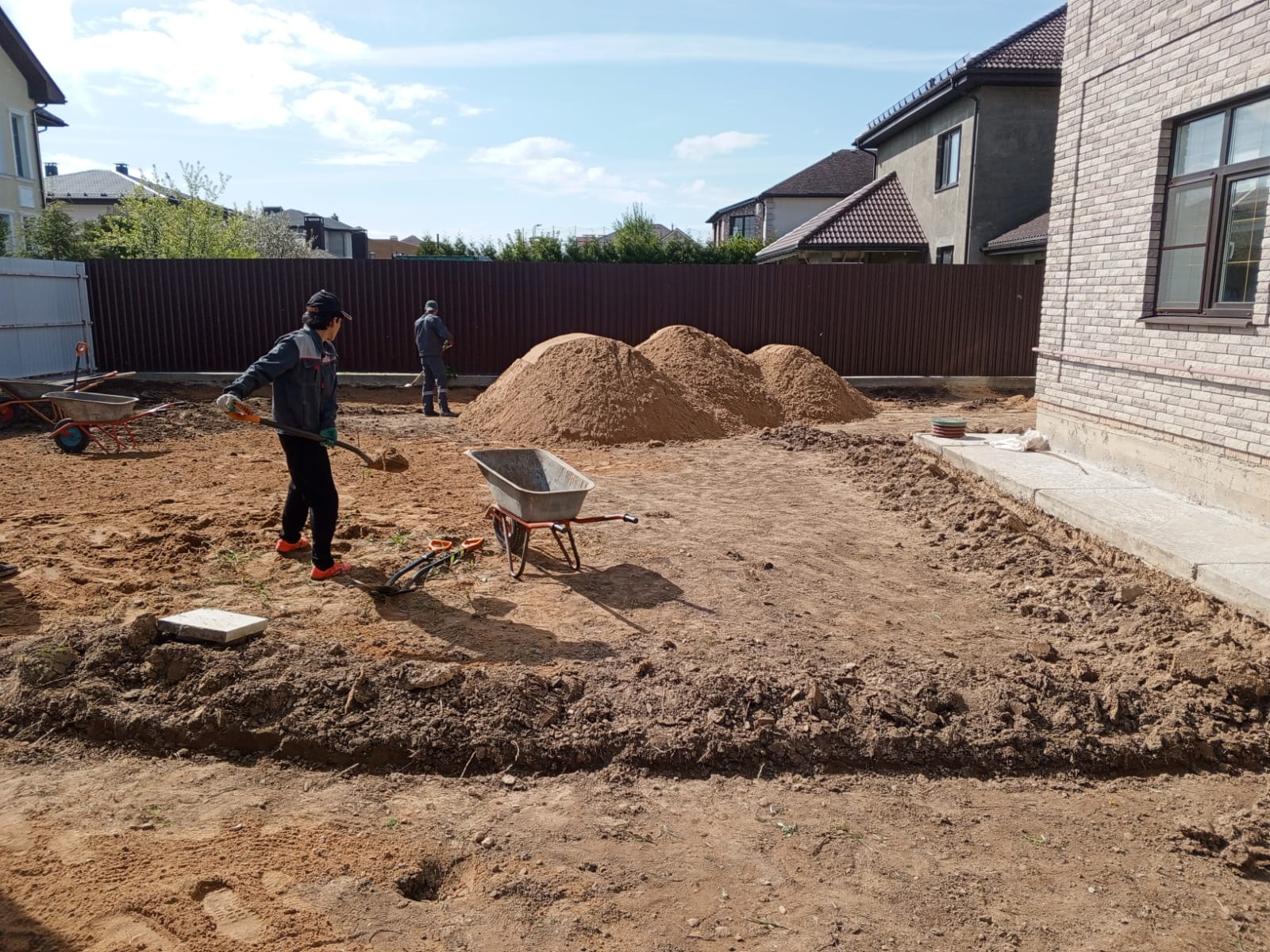 - Доставка и распределение грунта/песка